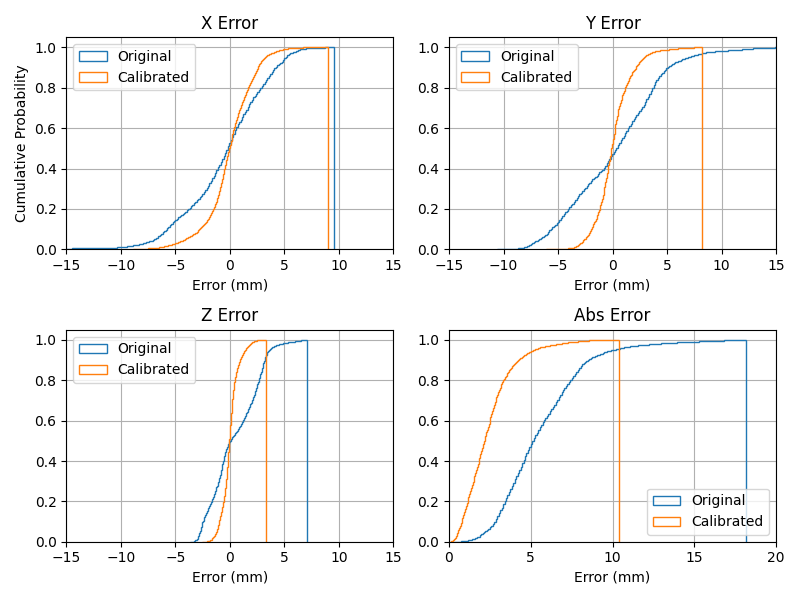 The script accepts the --cumulative flag to plot the cumulative distribution function of the positioning errors. Fig. 42 below shows the cumulative distribution function of the positioning errors for the x, y, and z axes.